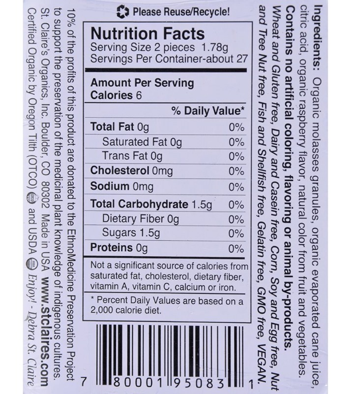 acid, organic raspberry flavor, blackcurrant, radish and apple for color. Contains no artificial coloring, flavoring,