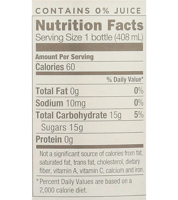 with real cane sugar and sourced naturally, so you can sip blissfully. Each bottle contains one 60 calorie
