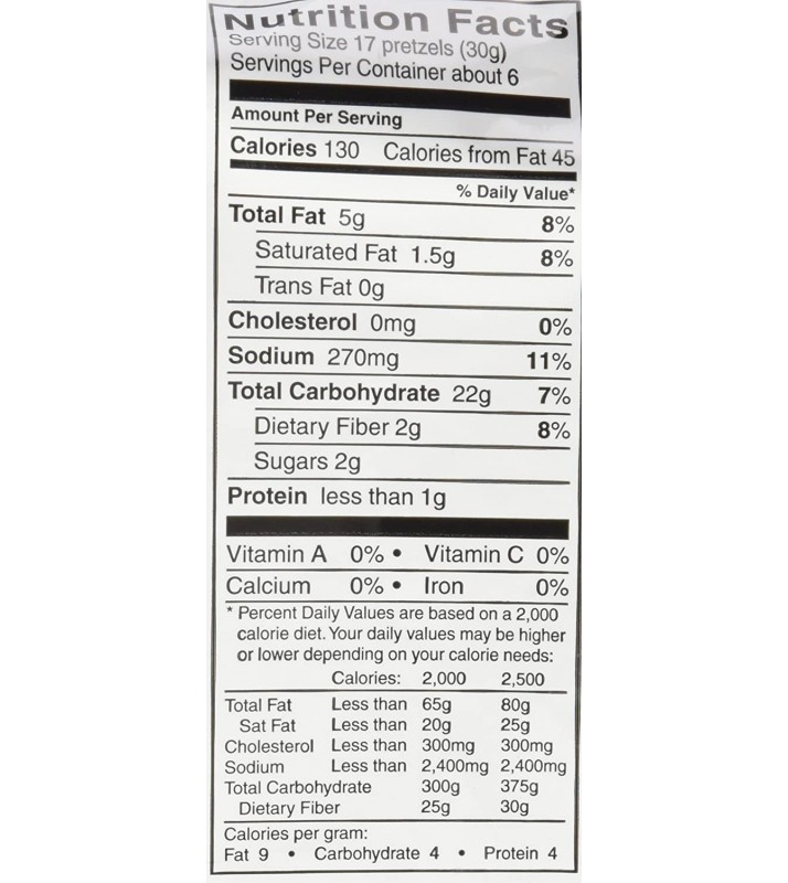- Mindful SNACKING - With just 130 calories and 5 grams of fat per serving, pretzel Twists are a delicious snack choice.