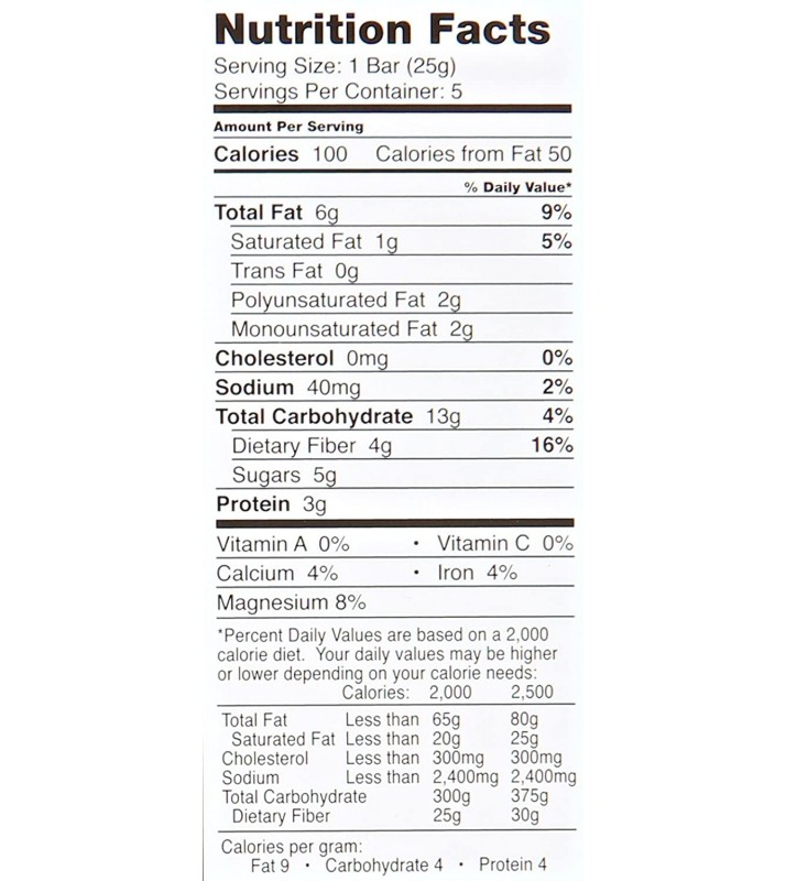 • 4-5g of Fiber *Contains 4.5-6g of total fat per bar