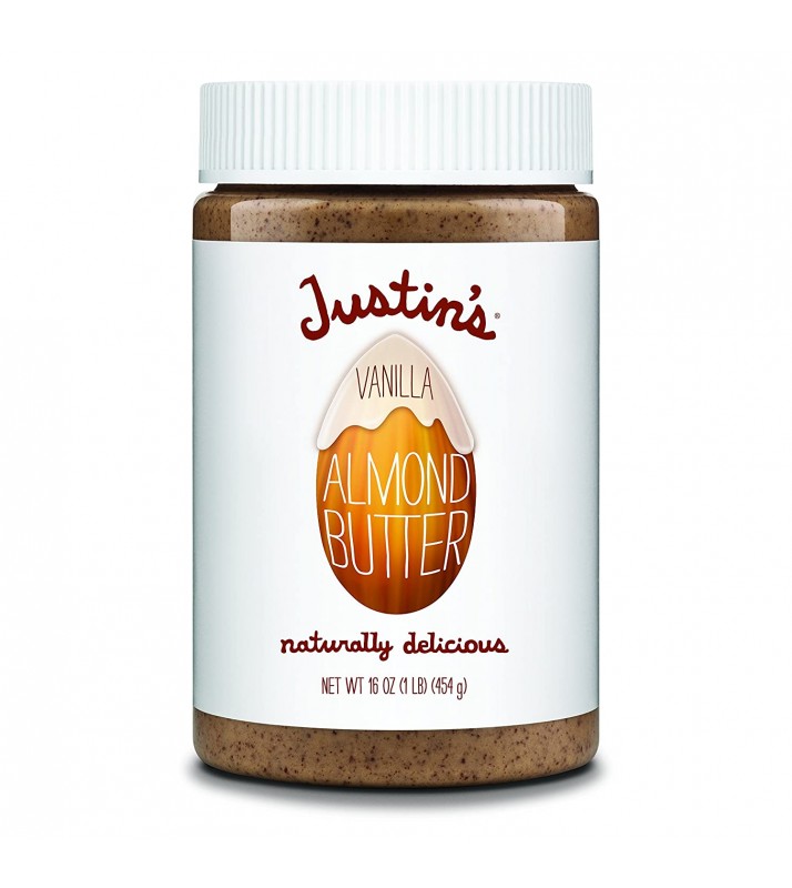 • 16oz Jar of Justin's naturally delicious Vanilla Almond Butter, perfect for tasty sandwiches and toast, or for healthy snacking