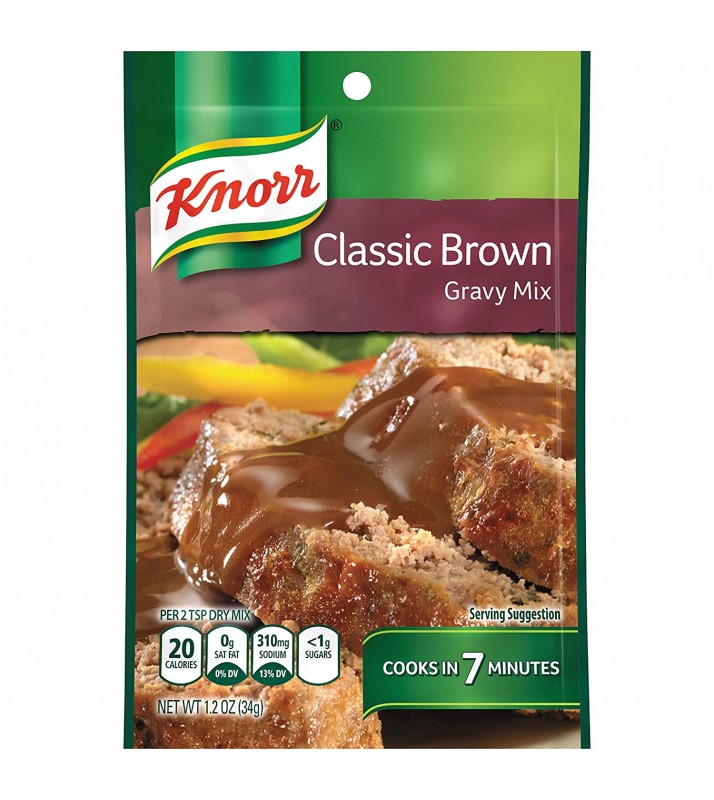 - Knorr Gravy Mix Classic Brown (1.2oz) is a traditional gravy, served perfectly over meatloaf and mashed potatoes