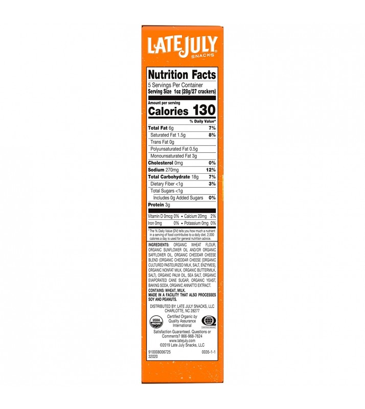 We use real ingredients in LATE JULY cheddar crackers, including organic cheddar cheese. Great for