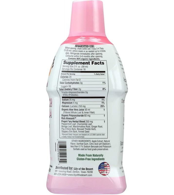 the intestinal tract. The soothing formula contains a unique blend of the finest quality aloe vera