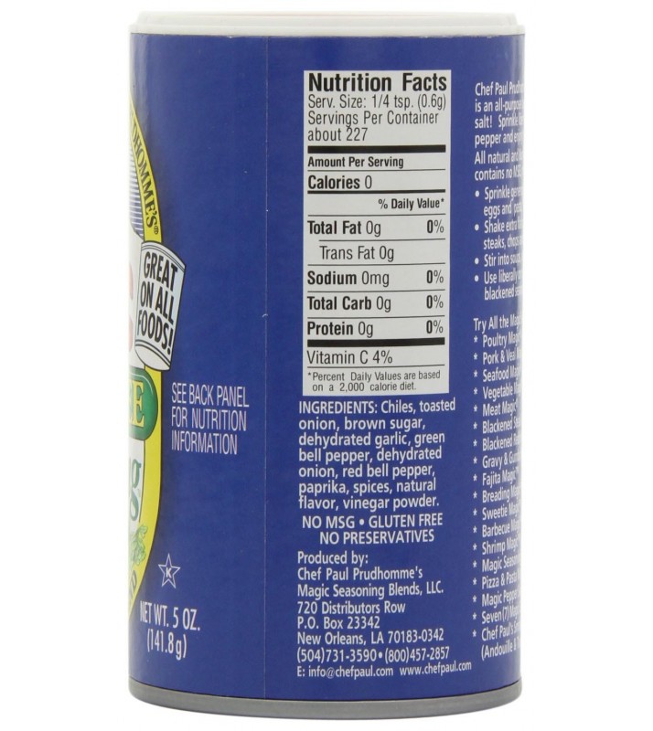 Chef Paul Prudhomme's Magic Salt Free Seasoning in an all purpose blend withgreat taste, but without any