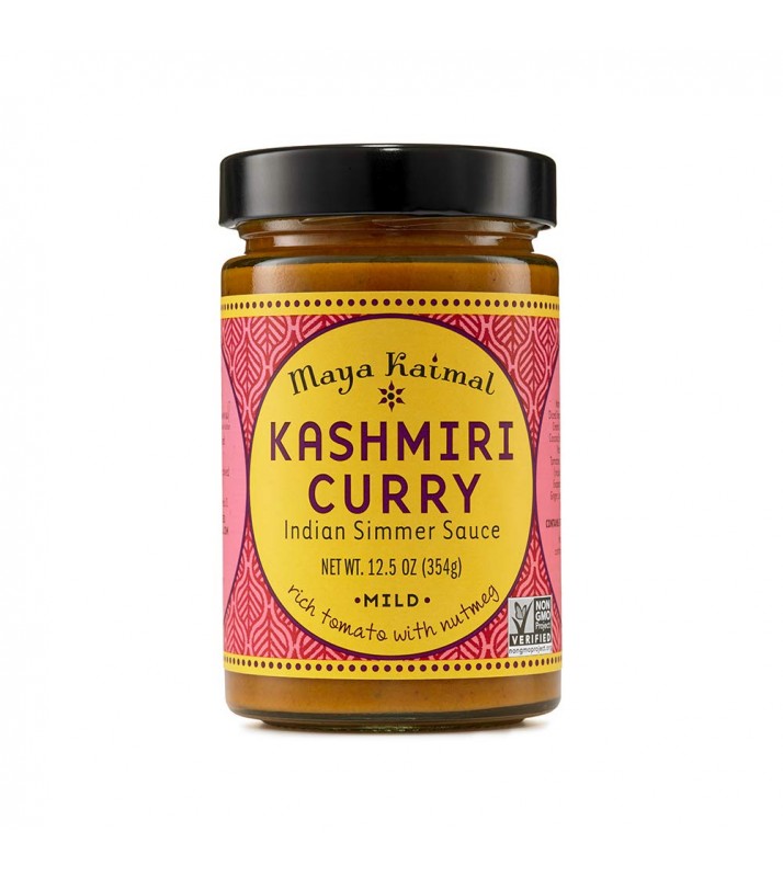 - A DELICIOUS INDIAN SIMMER SAUCE: Maya Kaimal's Kashmiri Curry is a balanced curry with hints of nutmeg, mace and rich tomato. Simmer with lamb for an authentic Rogan Josh, or enjoy with chicken, chickpeas or vegetables