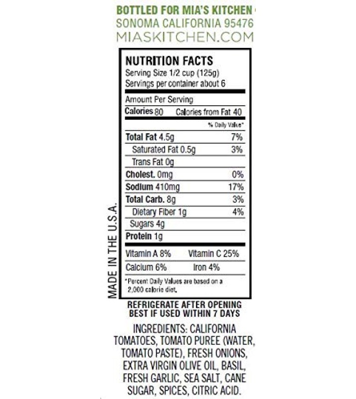 Mia's Kitchen Tomato Basil Pasta Sauce (6x25.5Oz)