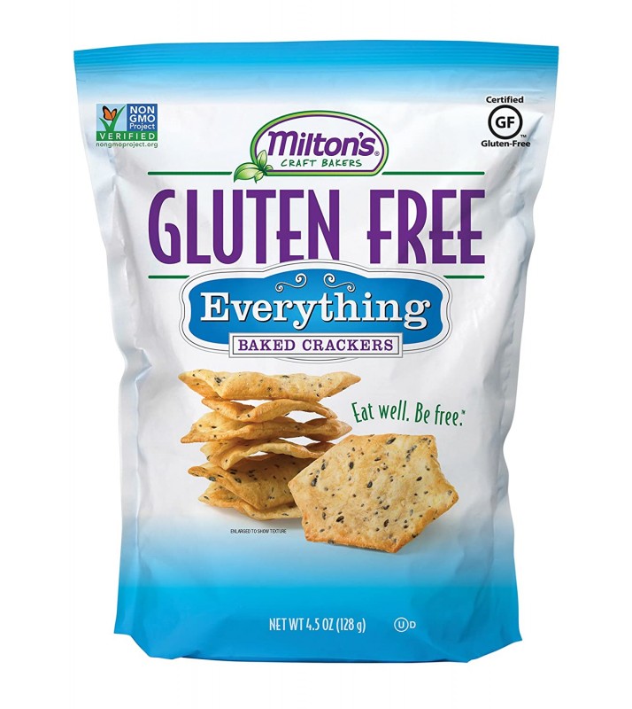 - GLUTEN FREE CRACKERS. Inspired by the popular flavor of the NYC everything bagel, Milton’s Gluten Free Everything Baked Crackers are made with 7 gluten-free grains, 4 seeds, and a special blend of seasonings—most notably garlic and onion.