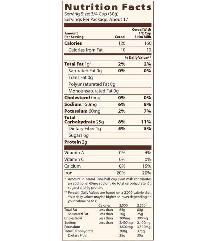 - Corn and whole wheat flake cereal with naturally honey flavored clusters.