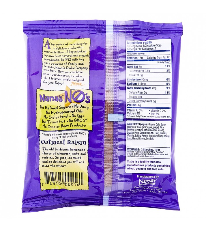 no cholesterol; no eggs; no added salt; no GMO's. No cane or beet products. Oatmeal Raisin: The old-fashioned