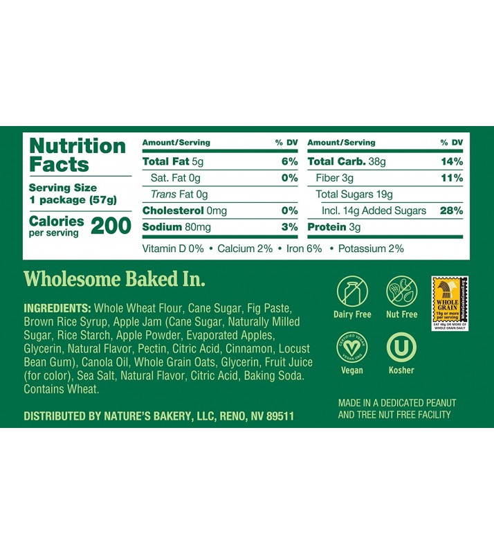 - Contains 1 - 12 Count Box (12 Twin Packs; 2 snack bars per Twin Pack) of Nature's Bakery Apple Cinnamon Whole Wheat Fig Bars