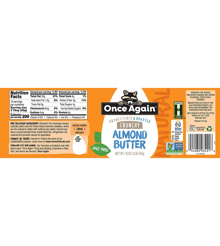 - All natural, crunchy Almond Butter