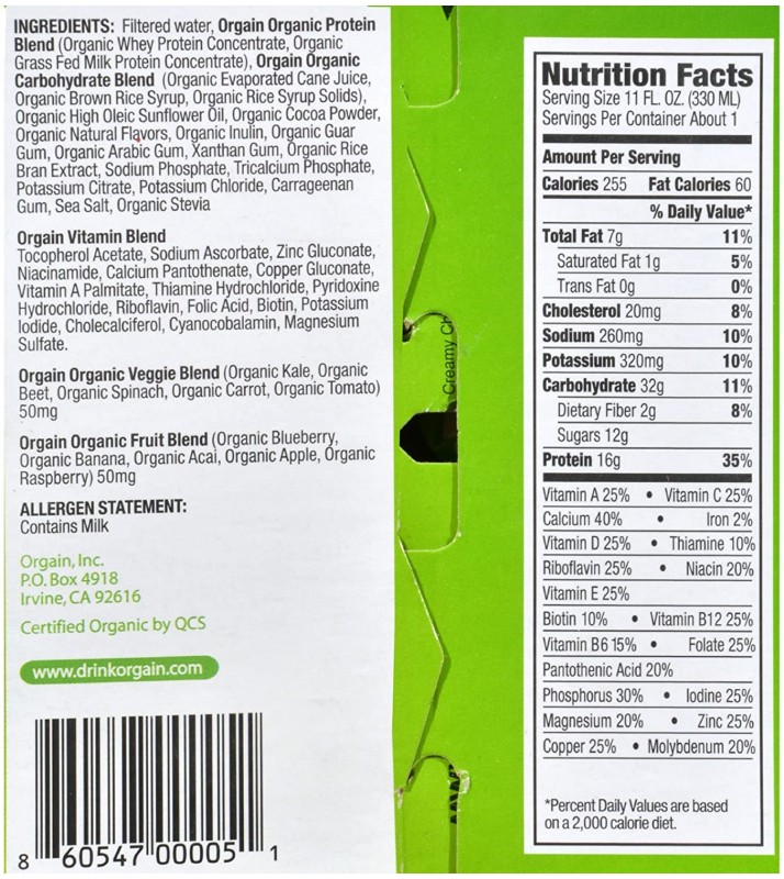 - Item: Orgain Organic Nutrition Shake - Mocha - 11 fl oz - - 3 x 4-Packs (12 Units total)