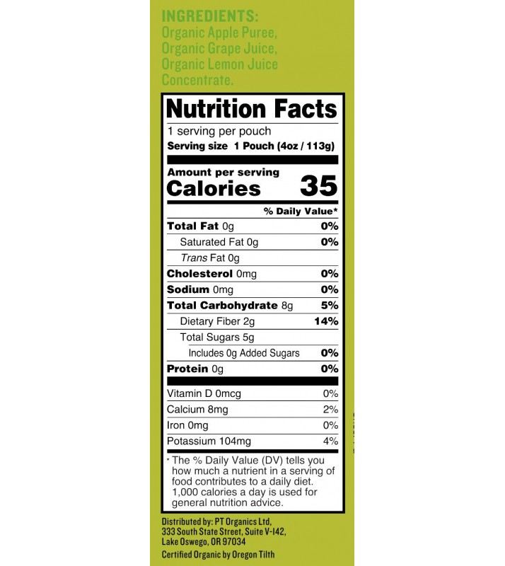 - INGREDIENTS: Organic Apple, Organic Grape Juice Concentrate, Organic Lemon Juice Concentrate.