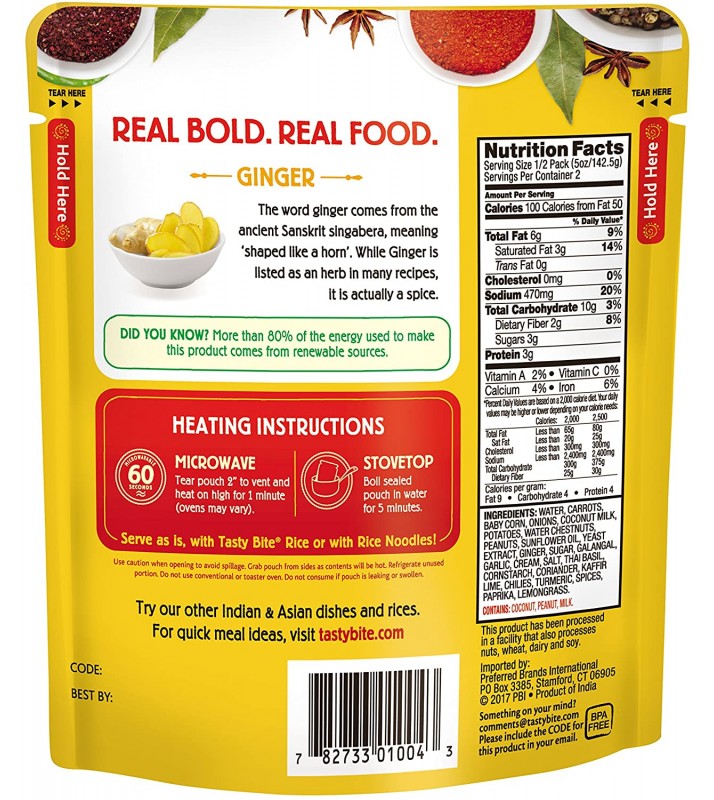 Tasty Bite Thai Penang Ginger Curry Entree (6x10 OZ)