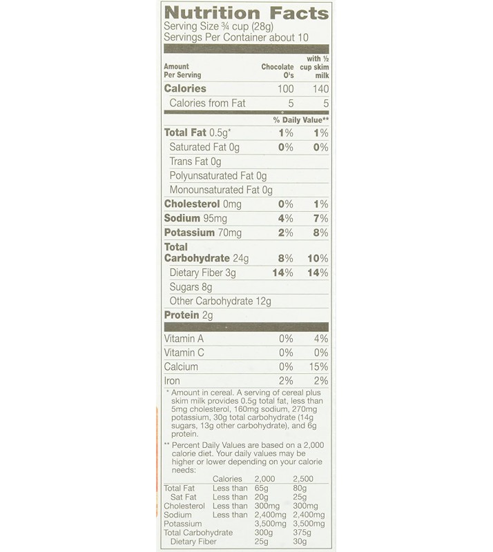 chocolate o's organic whole grain cereal: usda organic8g whole graingood source of fiberno