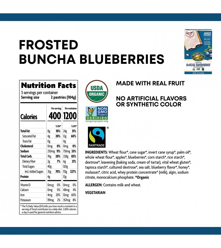 - THE VERSATILE SNACK: Pop one of these Bunch Blueberries frosted toaster pastries in the toaster for a warm start to your day or eat the delicious blend of real fruit and organic ingredients right out of the package. Either way, you’re fueling your body with wholesome ingredients free from artificial colors, flavors or preservatives.