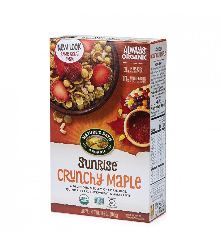 - INCLUDES: 12 boxes of Nature’s Path Sunrise Crunchy Maple Cereal (10.6 Ounces in each box).