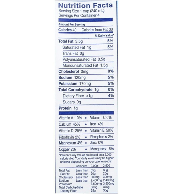 Casein, Gluten, Eggs, and MSGAll Natural with Added Vitamins & MineralsMade from REAL Almonds &