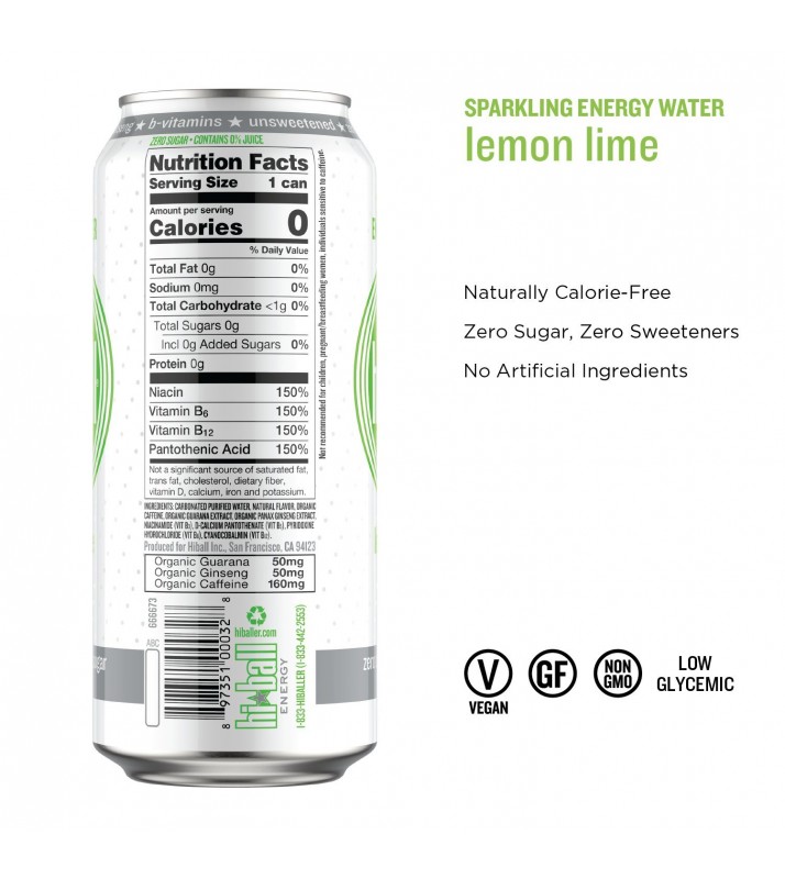 Hiball Energy Lemon Lime sparkling Energy Water is a zero sugar and zero calorie energy drink. This