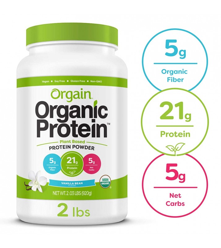 - Includes 1 (2.03 Pound) Orgain Organic Plant Based Vanilla Bean Protein Powder