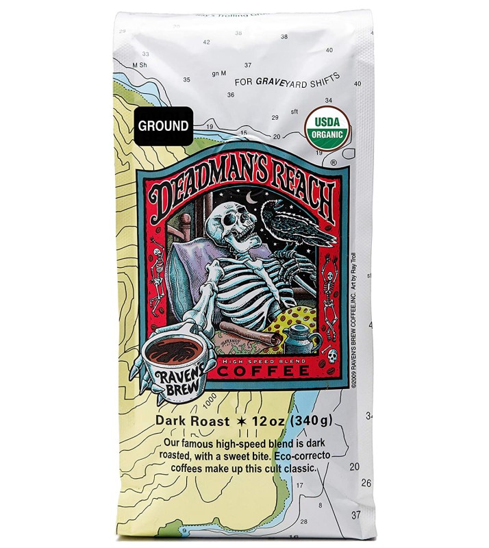 - DEADMAN’S REACH DARK ROAST COFFEE – SERVED IN BED, RAISES THE DEAD—Not just a legendary High-Speed Blend with a sweet bite, but a cultural experience. Revitalize your lifestyle and resurrect your palate with this inimitable Raven’s Brew Coffee cult classic that is amazing no matter how it's brewed: drip, press, espresso and more! Heavy, full body of dark bittersweet chocolate and hazelnuts with a sweet bite, this bold blend is our baristas’ choice for espresso.