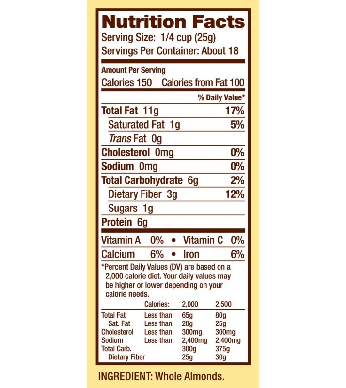 - 100% ALMONDS - No added fillers, flavors, colors or preservatives