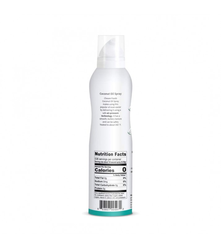 • CHOSEN FOODS COCONUT OIL SPRAY contains only expeller pressed liquid coconut oil.