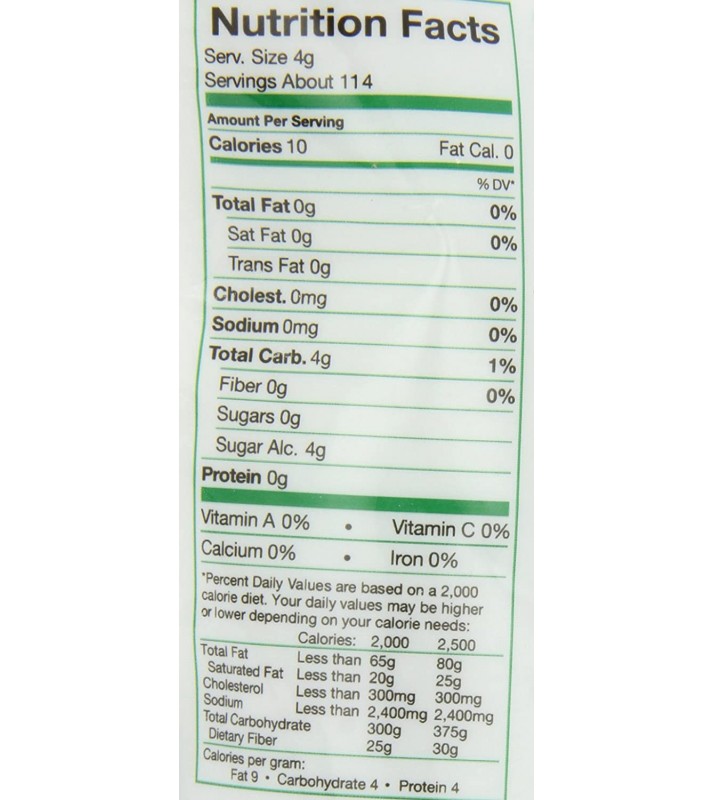promote cavities. Looks and taste like sugar. Leaves no aftertaste. Dissolves quickly.