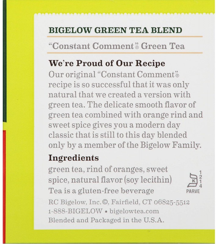 • CONSTANT COMMENT GOES GREEN: Known for its deep complex spiced flavor Constant Comment has long been a favorite of tea lovers. Green tea and orange peel with cinnamon & other aromatic spices just like the original.