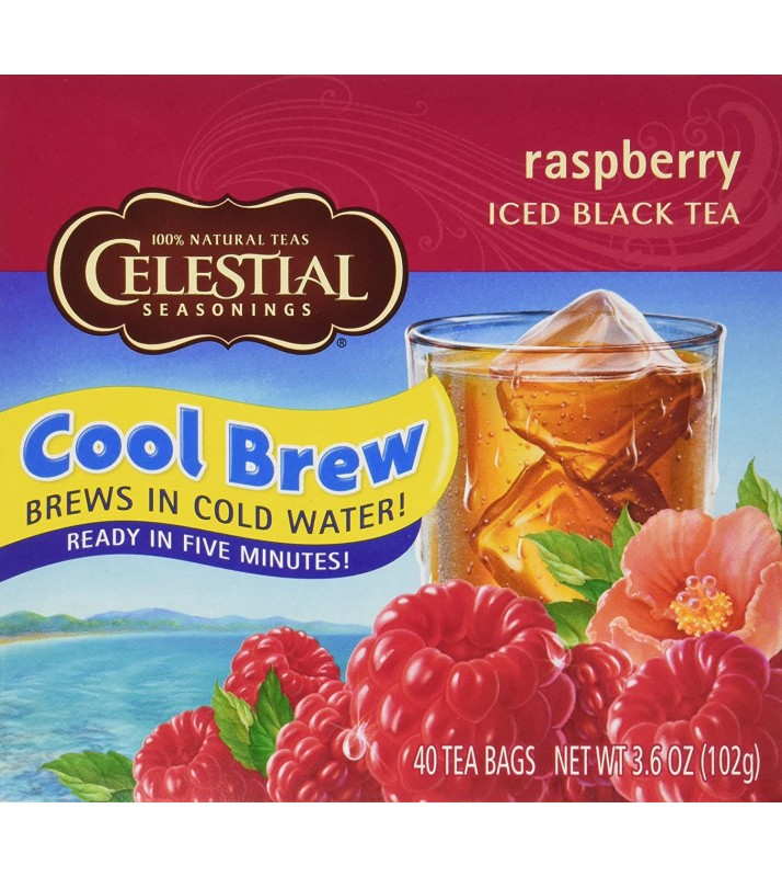 boxes. Includes six 40-count boxes of Celestial Seasonings Raspberry Cool Brew Iced Tea. Celestial