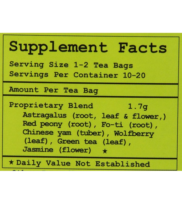 Antioxidant, energy, defer aging, detoxify, biological balance. 100% Natural. Flavored with jasmine flower,