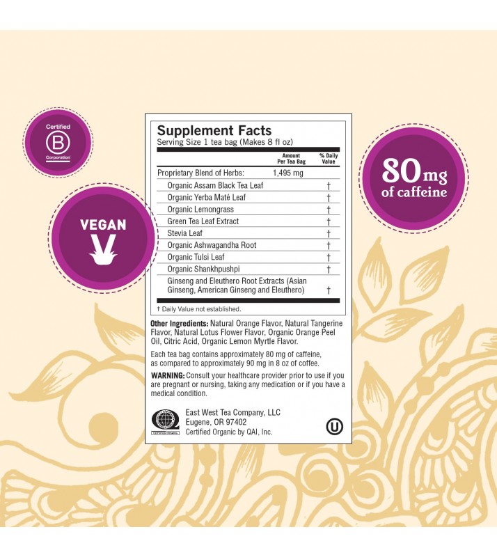 • CONTENTS: Contains Caffeine, Gluten free, Vegan and Kosher. No Artificial Flavors or Sweeteners. Individually packaged in compostable tea bags.