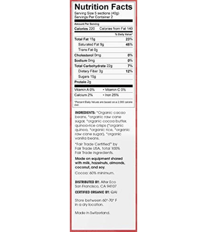 Alter Eco Chocolate Dark Quinoa (12x2.82OZ )
