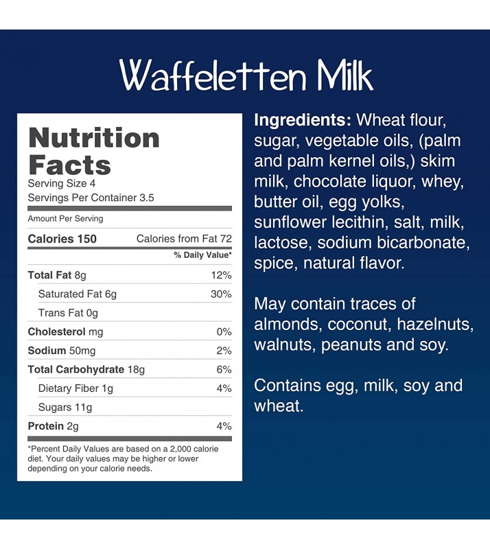 - WAFFELETTEN MILK COOKIES - A crunchy wafer first rolled into fine crisp layers, and then dipped halfway into rich European milk chocolate. Crisp cookie covered in creamy chocolate is a delightful treat! Made in Germany
