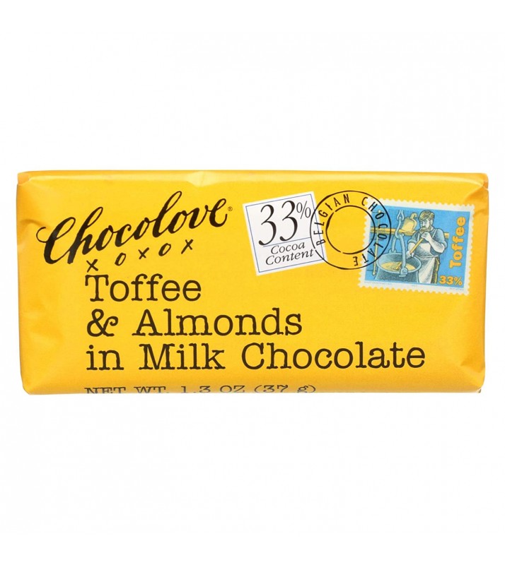 Chocolove Xoxox Toffee and Almonds in Milk Chocolate Mini Bar, 13 Ounce -- 12 per case.  This refreshingly