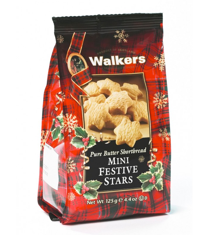 Walkers Mini Festive Stars shortbread cookies are made with fresh creamery butter, flour, sugar and salt...