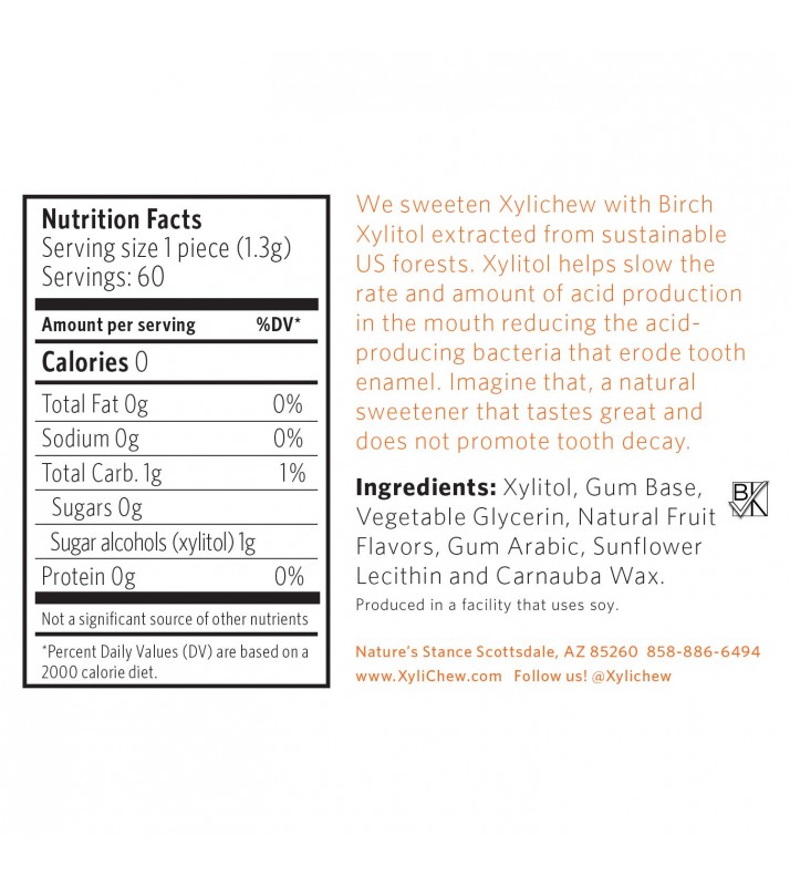 • Made in the USA: Xylichew is sweetened from Birch Xylitol from responsibly sustainably harvested birch and beech trees.