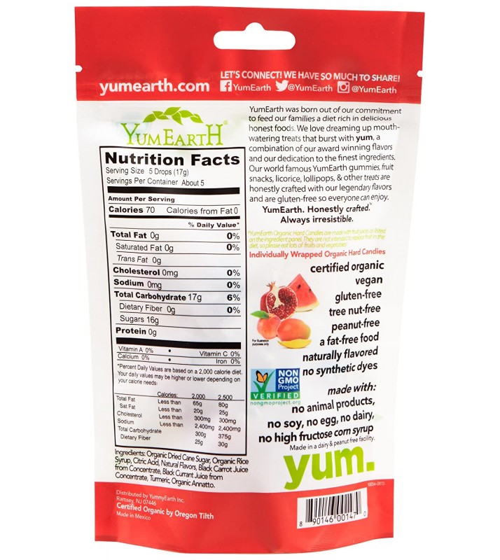 Yummy Earth 6X 3.3 Oz (6 pack) Organic Freshest Fruit Drops Made With Real Fruit Extracts And