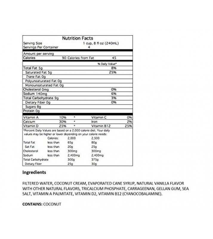 • Beverage made from coconut cream, evaporated cane juice, and natural vanilla flavor