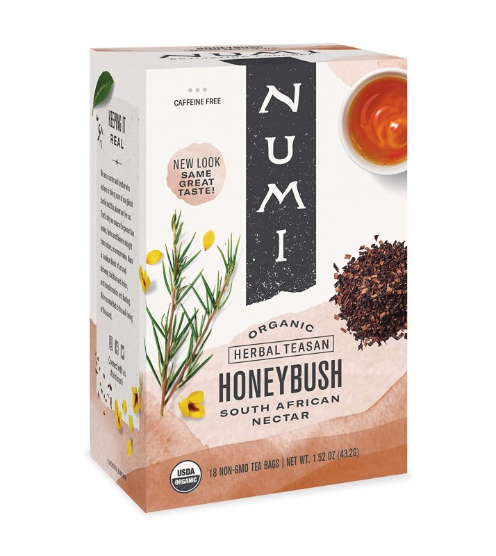 Numi Organic Tea honey bush herbal tea, 18 CT from south Africa, our organic honey bush is a flowering