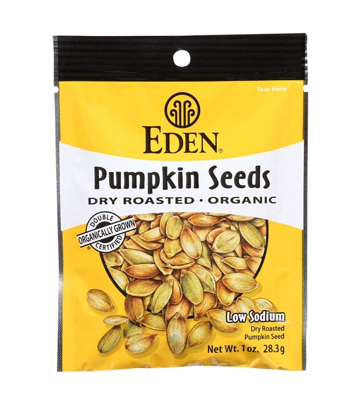 Eden Organic Pumpkin Seeds, Dry Roasted and Salted, Pocket Snacks, 1 Ounce (Pack of 12)