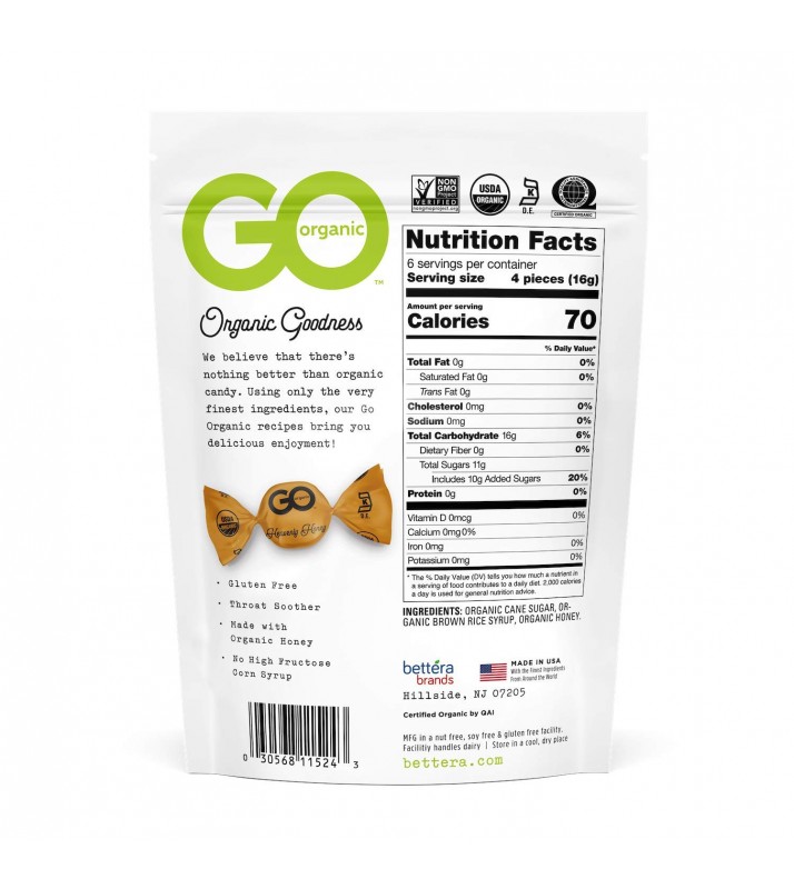 Go Naturally Organic Honey Hard Candies are made by hand in America, are gluten free, and contain