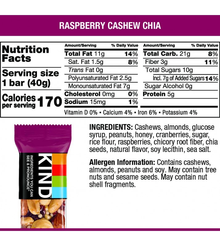 Kind Fruit & Nut Bar Raspberry Cashew & Chia Bars (12x1.4 OZ)