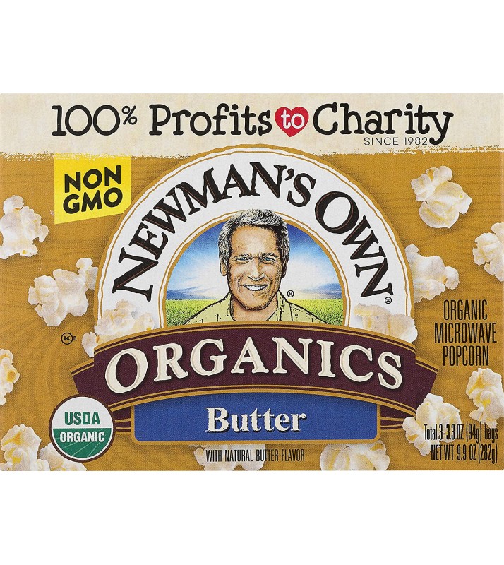 Newman’s Own Organics Butter Microwave Popcorn is a delicious organic snack and pops to perfection in