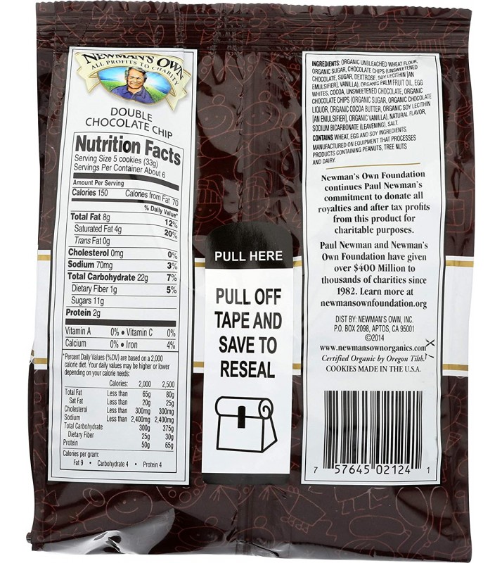 chocolate chips. Newman's Own, Inc., founded by Paul Newman in 1982, offers great tasting, high