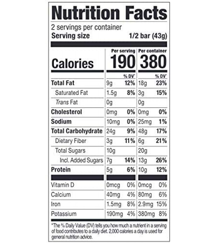 • 10g PROTEIN AND 6g FIBER (See Nutrition Information on package for total fat and saturated fat content.) Energy from PLANT-BASED protein and fiber from CHIA and FLAX SEEDS keep you moving whether at work or adventuring