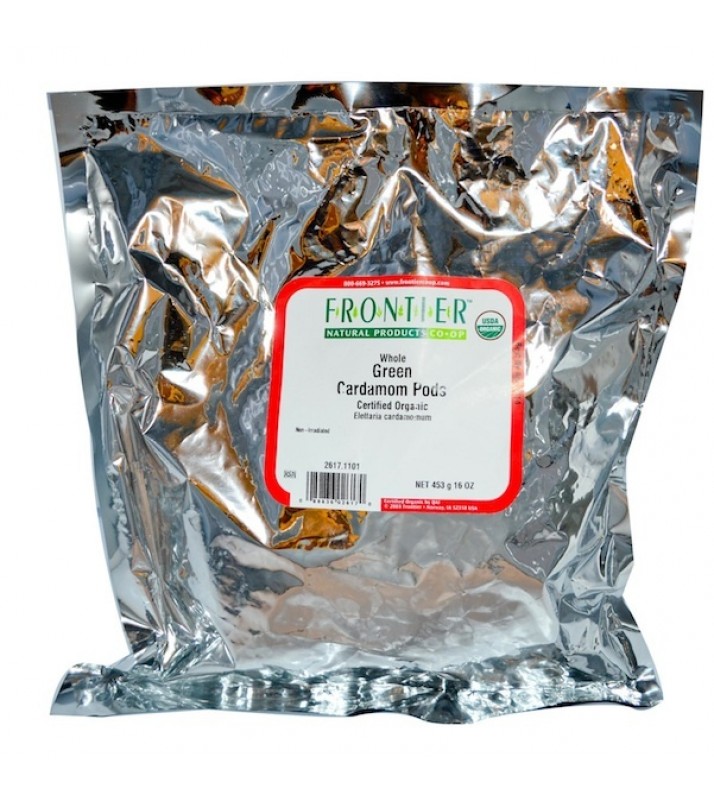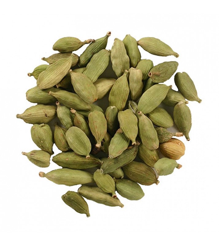 - Fresh cardamom pods are green. Careful drying retains the green color of the pod and the flavor of the cardamom seed inside the pod. Cardamom seed stored this way has the highest essential oil content and therefore the most flavor.