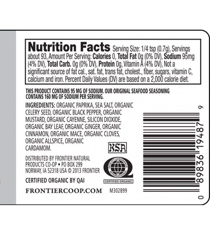 - An organic blend of spices for fish and seafood - with 30% less salt than our regular blend