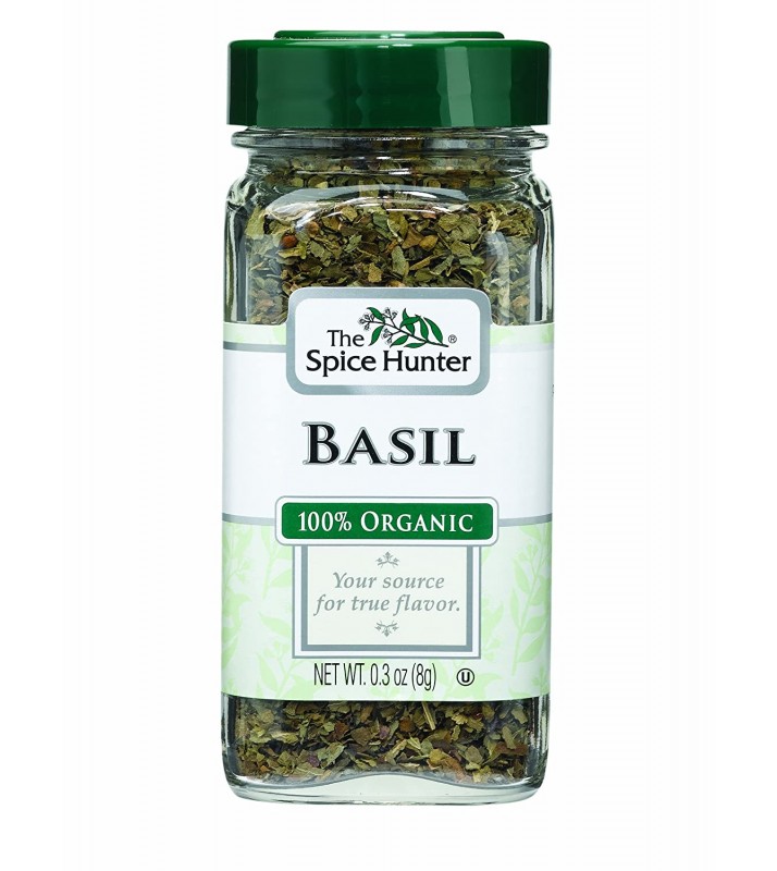 The Spice Hunter basil, organic comes in 0.3 ounce jars. As close to fresh as you can get for tomatoes,